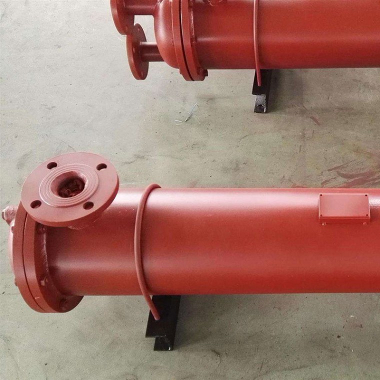 管式冷卻器的熱介質(zhì)從筒體上的接管進(jìn)口,并通過折疊通道曲折流向接管出口。冷卻器介質(zhì)采用雙管流,即冷卻器介質(zhì)從進(jìn)水口進(jìn)入一半冷卻器管,然后從回水蓋進(jìn)入另一半冷卻器管,進(jìn)入另一側(cè)的水蓋和出水管。在雙管流過程中,吸收熱介質(zhì)釋放的余熱從出口排出,使工作介質(zhì)保持額定的工作溫度。